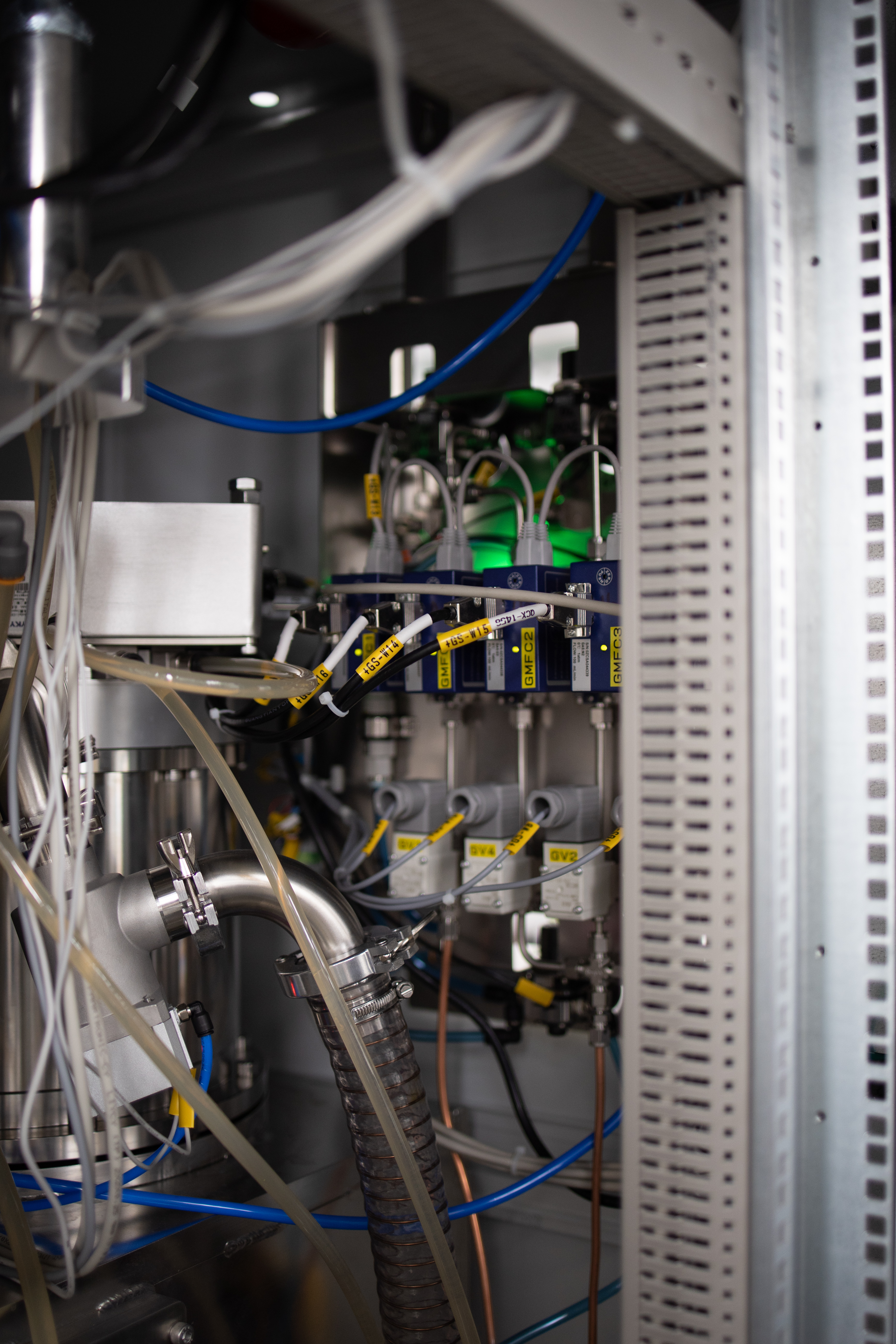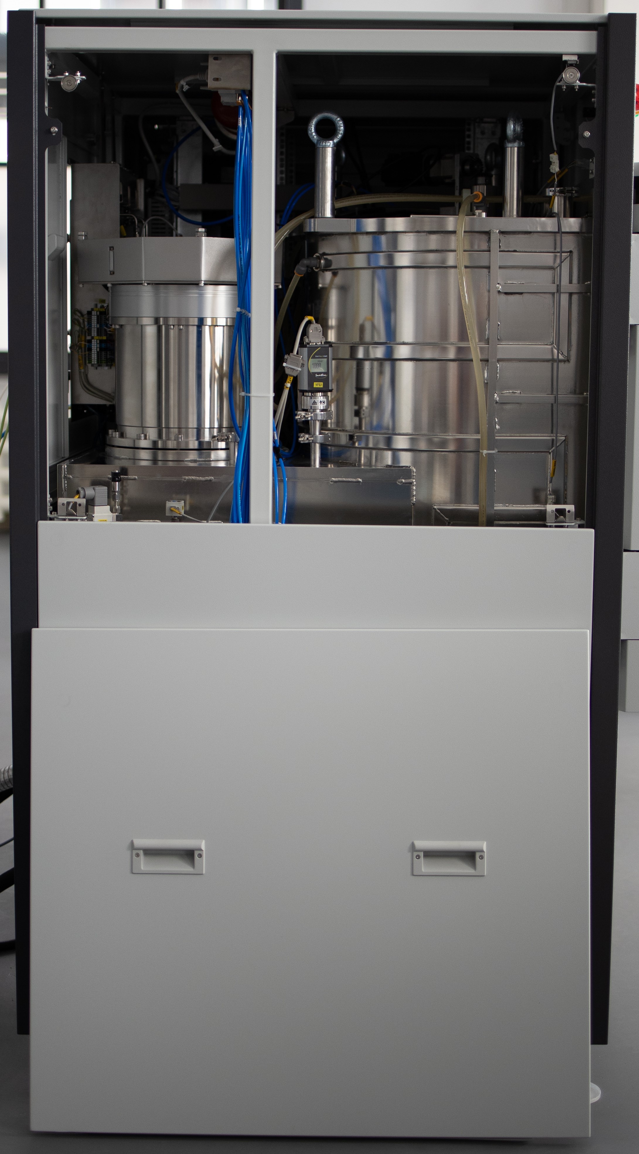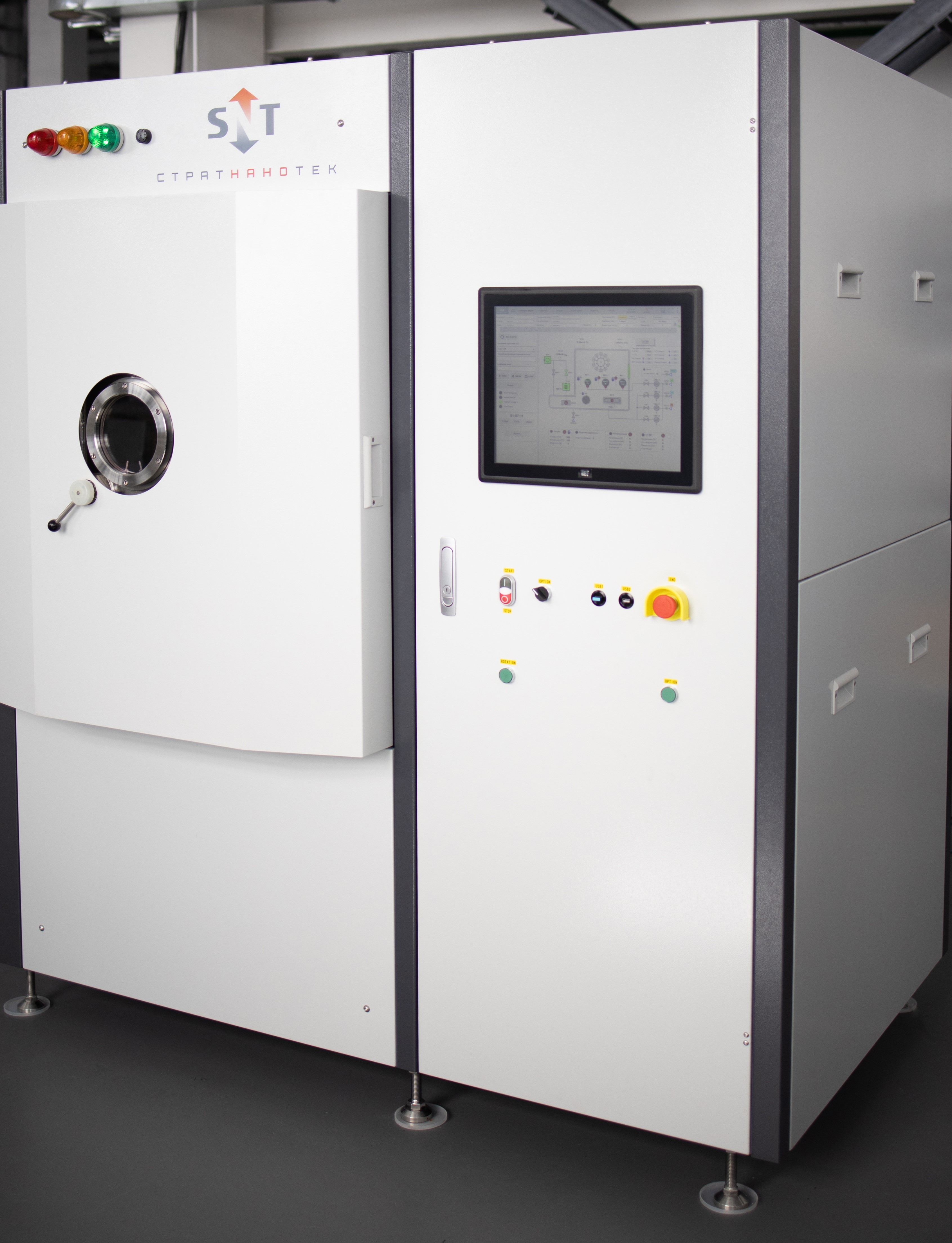 Прецизионность нанесения покрытий обеспечивается с помощью шести кварцевых датчиков, расположенных по центру держателя подложек. Это гарантирует высокую точность и повторяемость процесса формирования покрытия. Оборудование оснащено системой охлаждения и нагрева камеры, что улучшает стабильность технологического процесса и качество наносимых покрытий.